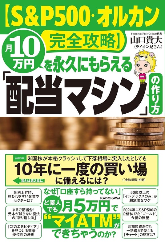2025年6月18日には3冊目の著書として『S&P500・オルカン完全攻略!月10万円を永久にもらえる配当マシンの作り方』を出版。初版部数は2万部。新NISA制度の非課税枠を活用した「月10万円の配当マシン」の作り方のほか、個別株や債券、ゴールド、ビットコインといった多様な投資対象についても網羅し、読者の年代や運用スタイルに応じた資産形成をサポートする内容となっている。