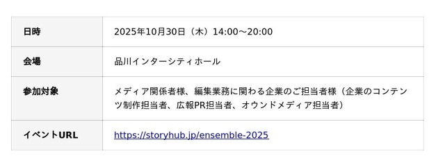 StoryHub株式会社(本社:東京都千代田区、代表取締役CEO:田島 将太、以下、当社)は、初開催となるメディア担当者向けカンファレンス「StoryHub Ensemble 2025」を2025年10月30日(木)に開催しました。