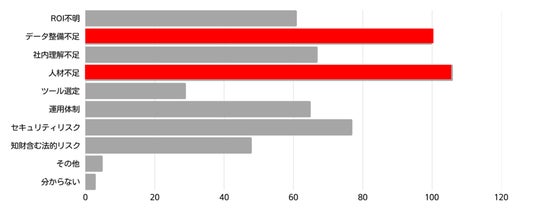 - AI活用の最大ボトルネックは「データ整備不足」・「AI人材不足」に