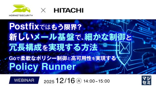 本セミナーでは、実際の構成例や導入事例を通じて、既存メール基盤では実現できなかった「ポリシー制御・自動化・冗長化」をどう実現できるのかを技術的観点から具体的に解説し、“既存構成を活かしながら次のステージへ移行する”ための現実的な方法をお伝えします。