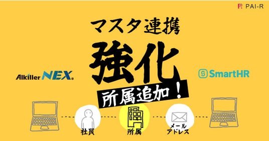 株式会社パイ・アール(本社:大阪市中央区、代表取締役:安田 將佑)は、白ナンバー向けアルコールチェックシステムでシェアNo.1※ を誇る「アルキラーNEX」と株式会社SmartHR(本社:東京都港区、 代表取締役CEO:芹澤 雅人 )のクラウド人事労務ソフトSmartHRとの追加のマスタ連携を 2025年11月25日(火) より提供開始したことをお知らせいたします。