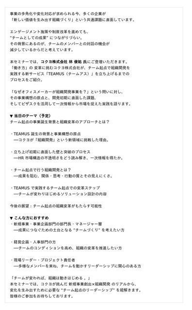 ~コクヨが実践するチーム起点の組織開発と、新規事業創出の裏側~
