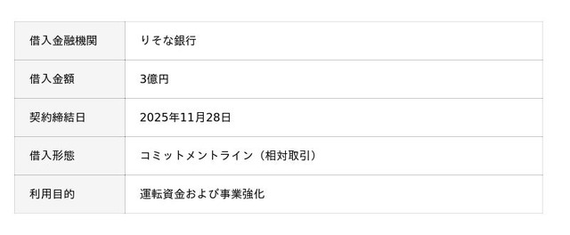 こうした背景を踏まえ、財務基盤の強化と運転資金の機動的な確保を目的として、このたび株式会社りそな銀行と新たにコミットメントライン契約を締結いたしました。