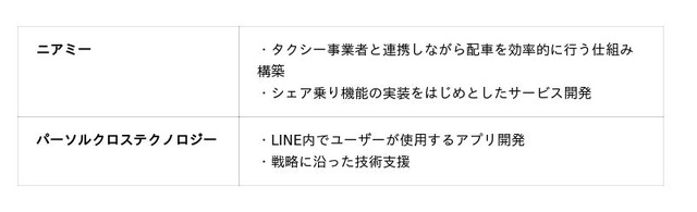 移動に関する課題解決に取り組むソーシャルデザインカンパニーである株式会社NearMe(本社:東京都中央区、代表取締役社長:高原幸一郎、以下「ニアミー」)は、テクノロジーソリューション事業を手がけるパーソルクロステクノロジー株式会社(本社:東京都新宿区、代表取締役社長:正木 慎二、以下:パーソルクロステクノロジー)とともに取り組んでいるAIとLINEを活用した「配車サービス」において、1台に複数組が乗車する『シェア乗り』機能を実装し、本日より運用を開始します。なお、本サービスはLINEヤフー株式会社が「Microsoft Azure」パートナー企業とともに、LINEを通じて全国各地のMaaSの普及拡大を支援する共同プロジェクトの一環として開発したサービスです。