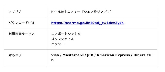 「NearMe」は、独自のAIを活用した最適なルーティングで、出発地から目的地までの移動をドアツードアで結ぶタクシーのシェアサービスです。その中でも、空港とその周辺の都市部を結ぶ空港送迎型の『エアポートシャトル』は、2019年8月のサービス開始から、 多くの方にご利用いただき、累計予約人数125万人※1を達成しました。現在は、全国16の空港※2(羽田空港、成田空港、伊丹空港、関西空港、新千歳空港、中部国際空港、福岡空港、那覇空港、旭川空港、帯広空港、青森空港、仙台空港、静岡空港、南紀白浜空港、徳島空港、北九州空港)と、空港周辺の都市部でご利用いただくことができます。対象エリアであれば、出発地となるご自宅から空港、そして空港から最終目的地まで一気通貫でつながるため、公共交通機関の乗り換えがなくなるなど、ストレスフリーな移動体験を提供することができます。また、貸切送迎サービスや、東京都と千葉県全域のゴルフ場と東京都23区内を結ぶゴルフシャトルなど、シチュエーションに応じて様々な移動のニーズに対応するための各種サービスを展開しています。