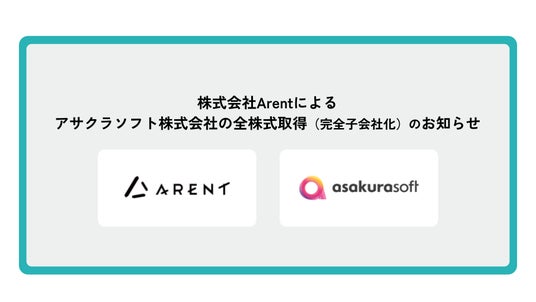 株式会社Arent(本社:東京都港区、代表取締役社長:鴨林 広軌、以下「Arent」)は、建設業向け業務ソフト「使えるくらうど」シリーズ(建築見積/工事台帳/建設勤怠 等)を展開するアサクラソフト株式会社(本社:岡山県津山市、代表取締役:浅倉 鉄平)の株式取得(持分比率100%)を本日取締役会で決議いたしましたのでお知らせします。
