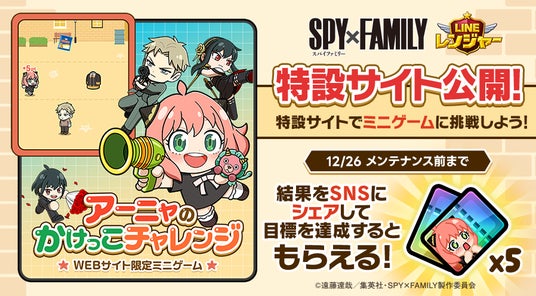 LINEヤフー株式会社は、当社が展開する防衛バトルゲーム「LINE レンジャー」(iPhone・Android対応/無料)において、TVアニメ『SPY×FAMILY』とのコラボレーションイベントを開催します。
