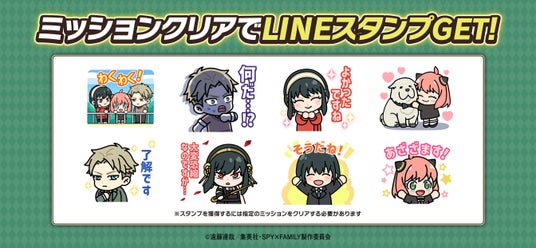 期間中、TVアニメ『SPY×FAMILY』コラボ開催を記念した限定LINEスタンプ(全8種)を配信します。コラボスペシャルステージ1を5回クリアすることで入手が可能です。詳細はゲーム内のお知らせをご確認ください。【配信期間】2025年12月2日(火)~12月26日(金)メンテナンスまで