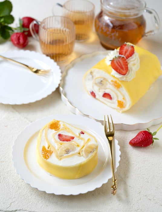 薄く焼いたクレープ生地にクリームをたっぷり巻き込み、タオルのようにくるくると巻いた韓国スイーツ。中にはフルーツがたっぷり入っていてボリューム満点ながら、ふわっと軽く食べられるのが魅力です。