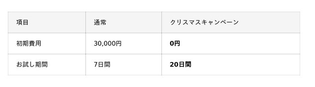 本キャンペーンでは、通常30,000円の初期費用が無料となり、さらに通常7日間のトライアル期間が20日間に延長。年末・クリスマス商戦に向けて、クロスマの全機能をじっくりお試しいただけます。