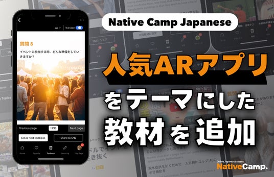 株式会社ネイティブキャンプ(本社:東京都渋谷区、代表取締役社長:谷川国洋)が提供するオンライン日本語会話サービス『Native Camp Japanese』では、このたび、人気教材「デイリートピック」に”人気ARアプリ”をテーマにした教材を追加しました。