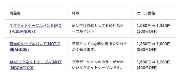 デスク周辺の整理に便利なケーブルバンドやケーブルクリップも1,000円で!
