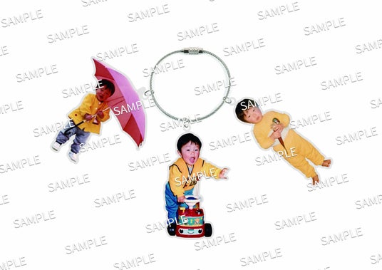 「たかちゃん3連アクリルキーホルダー」の写真は内澤自らセレクトし、お洋服も黄色で統一したキュートな仕上がりになっているので、ぜひ手にとってほしい。