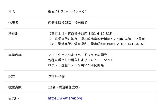 フィジカルAIを製造業に特化して開発する株式会社Zrek(読み:ゼレック、本社:東京都渋谷区、代表取締役 CEO:今村優希、以下「ZREK」)は、2025年12月3日(水)~6日(土)に東京ビッグサイトで開催される世界最大級のロボット専門展「2025国際ロボット展(iREX 2025)」に出展します。