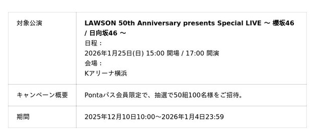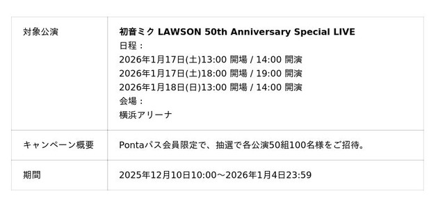 この度「Pontaパス エンタメぽんぽんBOX」では、Pontaパス会員限定で、初音ミク、=LOVE・≠ME・≒JOY、櫻坂46 /日向坂46、GLAYといった人気アーティストのライブや、「~『君の名は。』劇場公開10周年記念~新海誠作品 FILM CONCERT 2026」などの公演に招待するチケットプレゼントを実施予定です。抽選で、合計375組750名様のPontaパス会員をご招待いたします。