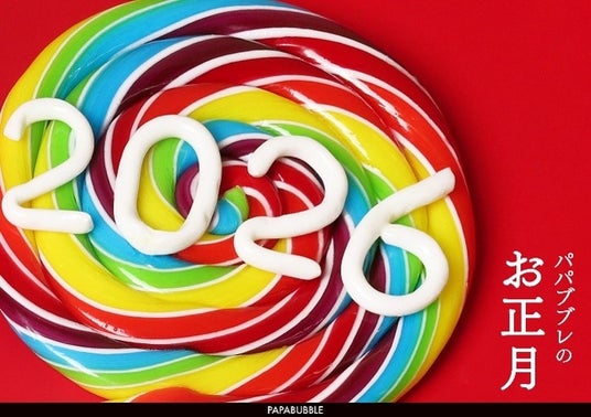 昨年も好評だった、西暦入りの直径約15cmの超BIGサイズロリポップが今年も登場。老若男女が心ときめくレインボーカラーで、新年のお祝いにふさわしい、気分の上がる華やかな仕上がりに。中央には「2026」の文字をあしらった、特別感を味わえる限定ロリポップキャンディです。