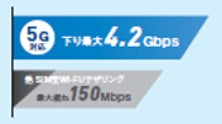 5G対応エリアでは、下り最大4.2Gbpsの高速通信をご利用いただけます。また、5Gに加えてWiMAX 2+ 、4G LTEを含めた3つのネットワークから、より最適な通信を自動的に選択・接続することで、快適にインターネットをご利用いただけます。