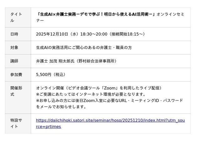 開催:第一法規株式会社(https://www.daiichihoki.co.jp)