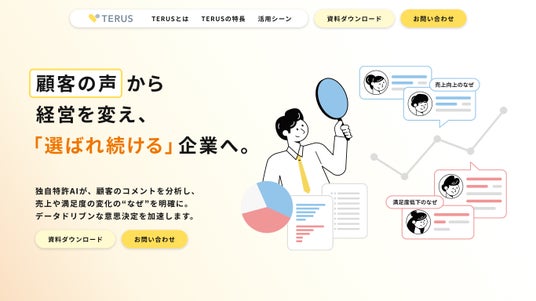 「TERUS(テラス)」は、顧客の“声”をもとに、意思決定を支援するAI×体験分析プラットフォームです。