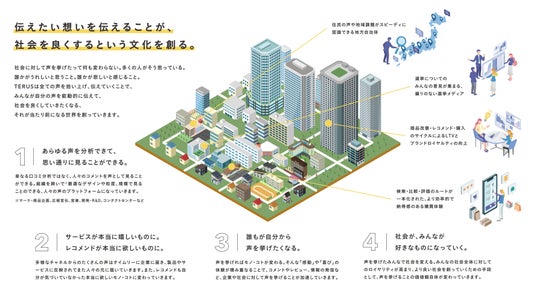 主力プロダクトである「TERUS」は、顧客や社員の様々な声や体験を収集・構造化し、現場の意思決定に直結させるためのAI分析プラットフォームです。散在する声を“意思決定に効くデータ”へ変換し、世界中の様々な声や体験が届くべき人に直接届くことで、製品やサービスが顧客や社員のために絶えず良くなり続ける循環を提供します。