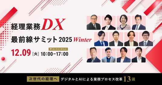 この度、株式会社インボイス(本社:東京都千代田区、代表取締役社長:仁多見 斎 、以下「インボイス」)は、2025年12月9日(火)に開催する無料オンラインカンファレンス【経理業務DX最前線サミット 2025 Winter ~次世代の経理へ。デジタルとAIによる業務プロセス改革13選~】の全プログラムが決定したことをお知らせいたします。
