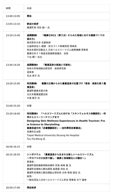 テーマ 豊富温泉から生まれる新しいへルスツーリズム