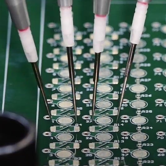 電子機器の制御に必要な電子回路基板は、多くの分野で重要な部品です。フライングプローブテスタは、基板の製造過程で発生する様々な不良を迅速かつ確実に検出する検査機であり、1987年にタカヤが開発・販売を開始しました。現在も業界トップクラスのシェアを誇り、実装基板検査機業界におけるリーディングカンパニーとして確固たる地位を築いています。