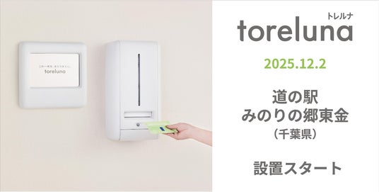 株式会社ネクイノ(大阪市北区、代表:石井 健一)は、トイレの個室で生理用ナプキンを常備し無料で提供するサービス「toreluna(トレルナ)」(以下 トレルナ)を、道の駅 みのりの郷東金へ設置し、サービスの提供を開始いたしました。