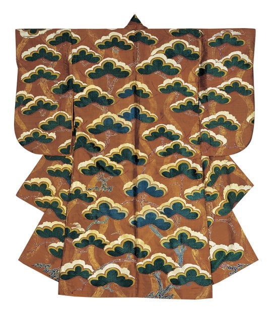 縫箔 茶地立涌雪持松模様 1領 絹 日本・桃山時代 17世紀 根津美術館蔵