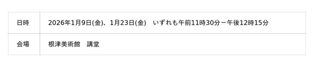 当館ホームページ<イベント情報」>の各申込フォームから参加をお申込みください。受付開始は2025年12月9日(火)午後1時です。参加は無料ですが、美術館入館料が必要です。