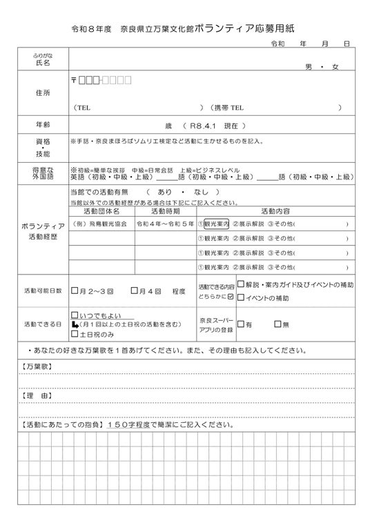 ※事前研修は、令和8年2月14日(土)及び15日(日)に万葉文化館にて実施予定