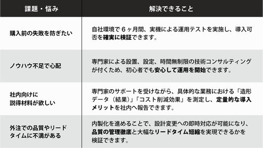 3Dプリンターは高い自由度を持つ一方で、導入には機種の選定、ノウハウ、運用設計が不可欠です。これらの課題から、購入前の実機テストの重要性が高まっています。