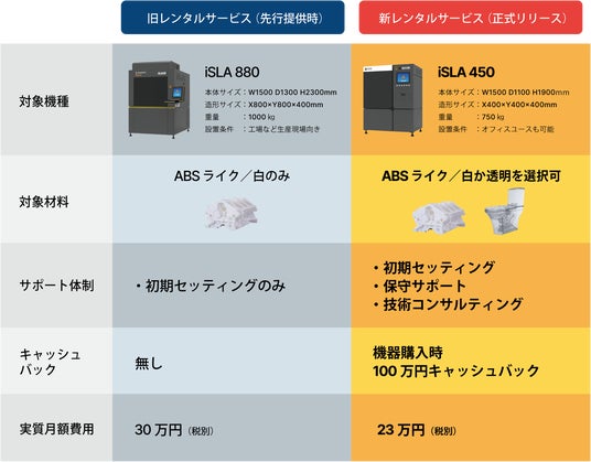 レンタルサービスの概要対象機器:産業用大型3Dプリンター『iSLA450』