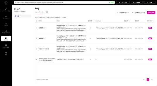 従来、Mazrica EngageのAIエージェントは、PDFやWebサイトなどのコンテンツを読み込んで学習していましたが、資料に記載されていない細かい質問への対応や複雑な回答には限界があり、企業が保有する膨大な知識をAIに効率的に学習させることが課題となっていました。上記を解決すべく、今回のアップデートに加え、以下の機能を順次実装してまいります。