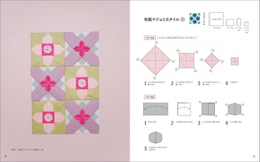 大正から昭和初期にかけて生み出された「和製マジョリカタイル」と呼ばれる美しいタイルや、モロッコ、スペインなどのモザイク技法や幾何学模様の装飾タイルなど……シンプルな形の繰り返しで生まれる美しい模様をおりがみで再現したらというアイデアから生まれた1冊です。