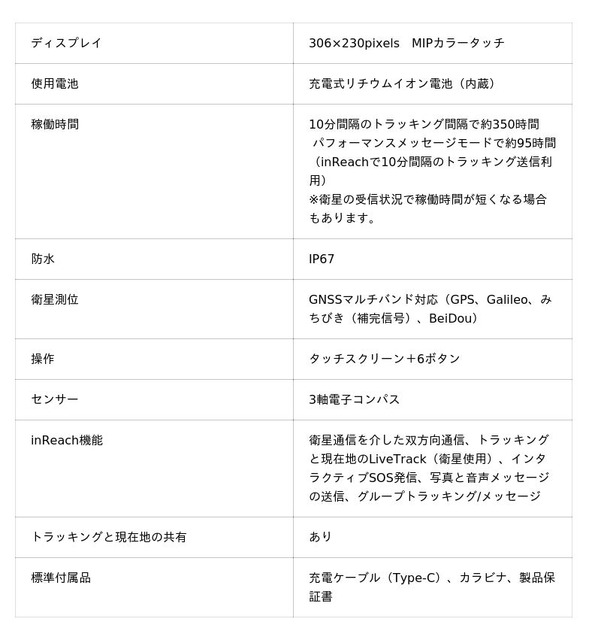 ・Garmin応答センターと24時間365日の双方向SOSメッセージが可能
