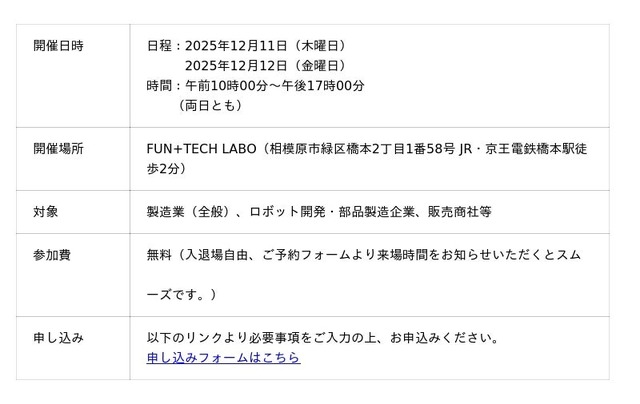 これらの取組の一環で、JR東海が運営し、神奈川県がさがみロボット産業特区における「ロボット企業交流拠点」と位置付けている「FUN+TECH LABO」と当協会がコラボレーションし、より多くの方にアシストスーツを比較・体験できる機会を設けることとなりました。