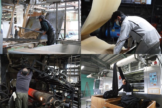 国内最後のコーデュロイ加工場「磐田産業」の加工工程の様子
