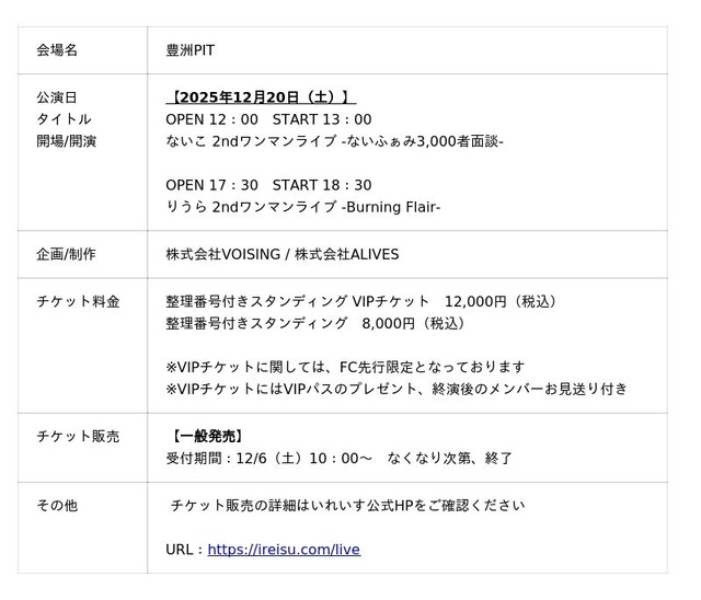 ■りうら・ないこソロライブ詳細