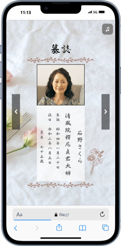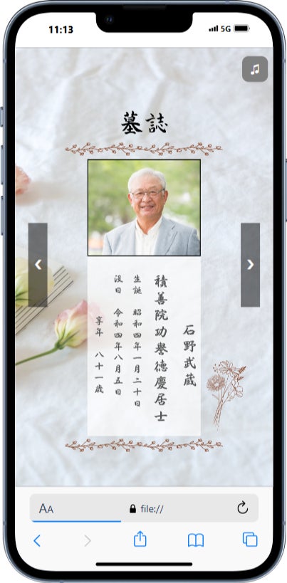 - 戒名、遺影、メッセージなどを墓誌として保存可能