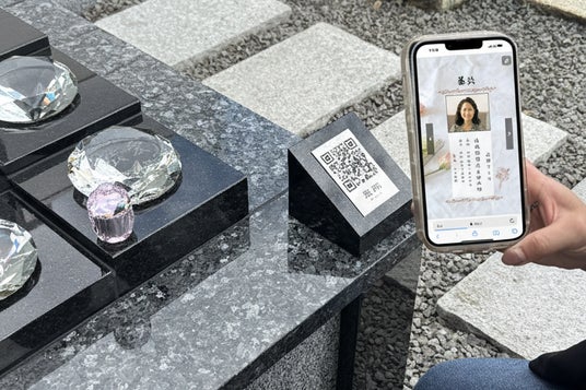 電子墓誌は、お墓に設置された永久QRコードまたはICタグ(NFC)を通じて、スマートフォンやタブレットから先祖・故人の記録を検索・閲覧できるデジタル墓誌です。