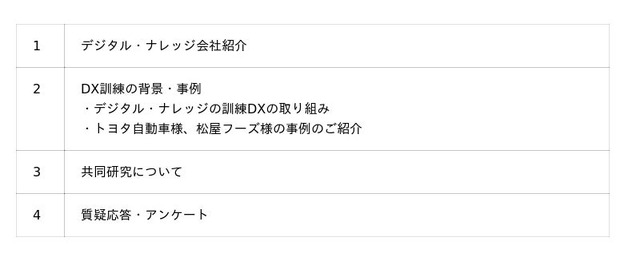 また、参加者の皆様から、より実りのある訓練DXを実現するための研究テーマを募り、共同で研究する企業様を募集いたします。
