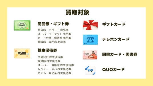 IVAはこうした市場動向を踏まえ、金券・商品券を新たに買取カテゴリーに追加しました。