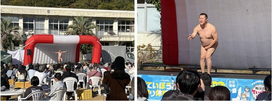 このイベントには人気芸人のとにかく明るい安村さんも登場し、海を守る活動の大切さを来場者に発信しました。安村さんはおなじみとなった全裸に見えるポーズを数多く披露し、会場を盛り上げました。またトークショーでは自らを「とにかく海を大切にする安村」とアピール。「ごみはポイ捨てせずに持ち帰りましょう」と呼びかけました。また「ごみを拾う全裸ポーズ」を披露する場面もあり、とにかく明るく自分たちが海のためにできることをしようと呼びかけました。
