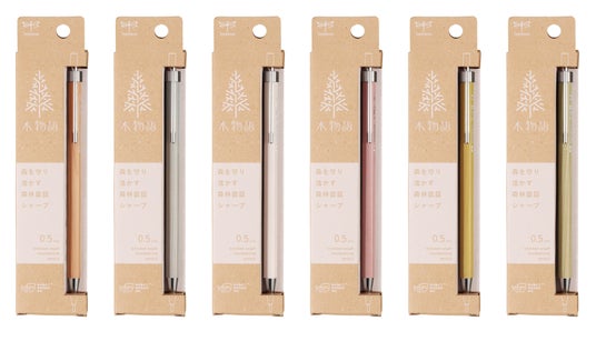 株式会社トンボ鉛筆(本社・東京都北区、社長・福嶋潤一)は、鉛筆の軸として理想とされる目にやさしく、手におだやかな天然木「インセンスシダー」※ をシャープペンシルのボディ全体に採用したノック式0.5mm芯『シャープペンシル 木物語』(商品名/価格594円(税抜540円))6色を12月10日から全国の文具店、文具コーナー他で順次発売します。