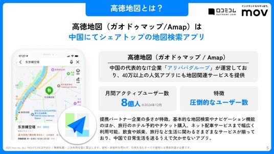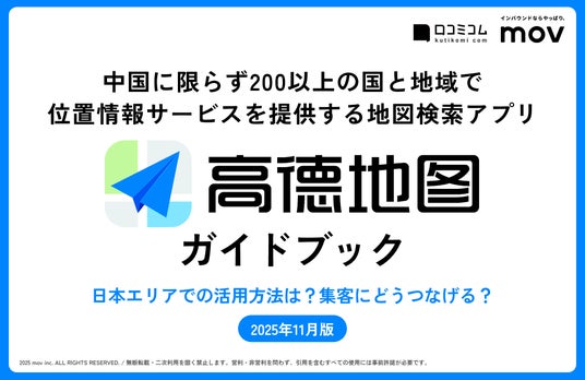 業界最大級のインバウンドビジネスメディア「訪日ラボ」及び 店舗向け集客一元化プラットフォーム「口コミコム」を運営する株式会社mov(代表取締役:渡邊 誠、本社:東京都渋谷区、以下mov)は、中国人向けインバウンド対策を強化したい事業者さまへ向けて“世界200以上の国と地域でサービスを提供する地図検索アプリ”である「高徳地図(ガオドゥマップ/Amap)」の基本情報をまとめた「高徳地図ガイドブック」を公開しました。
