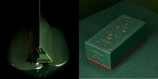「抹茶ショコラノエルプレミアム」は、抹茶を極める「祇園辻利」が、この合組の考え方を元に、抹茶の特長を見極め、5種類の異なる抹茶それぞれの長所を活かしながら各層のマリアージュを徹底的に追求した特別なスイーツ。