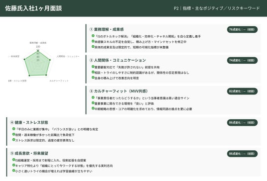 面談後、録画データや文字起こしに加え、AIが自動でレポートを作成します。音声、テキスト、動画のデータソースを元に、主観やバイアスを排除し、常に客観的で一貫性のあるレポートを活用することが可能になります。