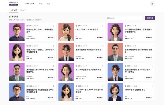 「PeopleX AIロープレ」は、AIによるロープレで、実践的なトレーニング、育成コストの低減、公正な評価を実現します。時間や場所を問わず、あらゆるケースに対応したロープレをワンツールで行うことが可能です。本サービスは、2026年1月に提供を開始いたします。