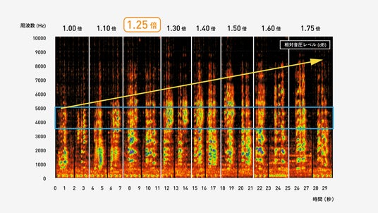 <音声変換機能に関する実証結果2.>3,500ヘルツ~5,000ヘルツの周波数成分を有する声に変換するメガホン